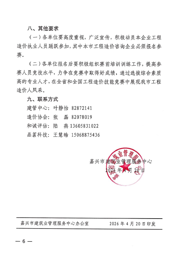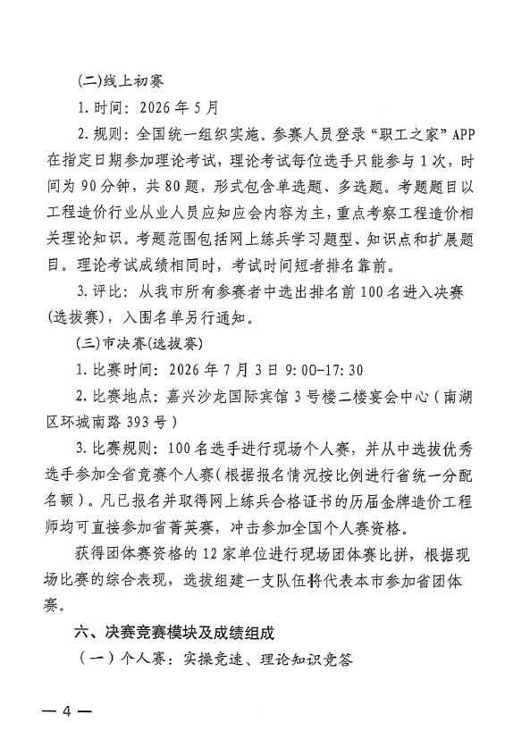 关于举办2026年嘉兴市“和诚杯”工程造价(数字)职业技能竞赛暨浙江省第六届工程造价(数字)职业技能竞赛嘉兴赛区选拔赛的通知