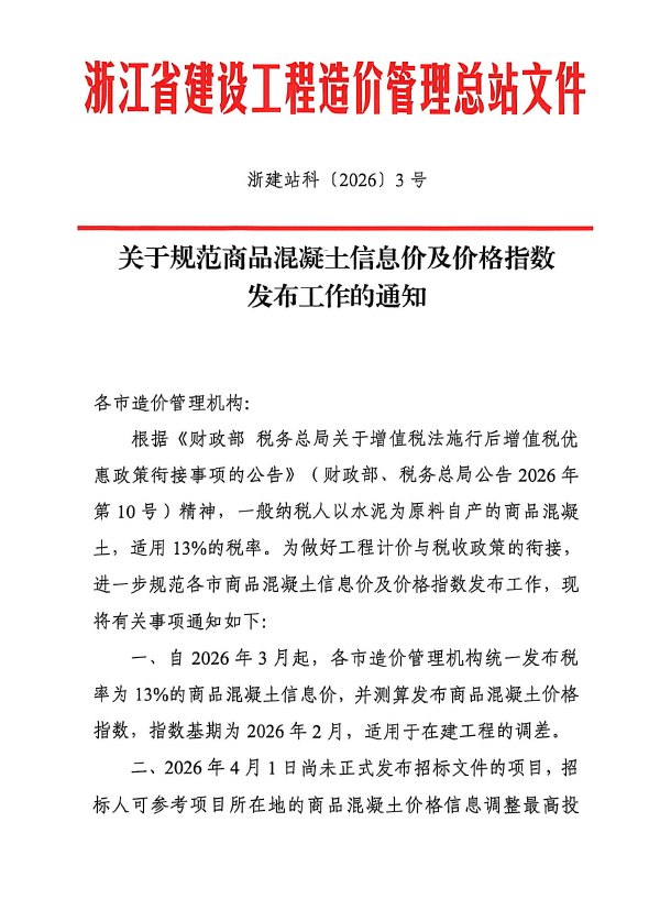 关于规范商品混凝土信息价及价格指数发布工作的通知